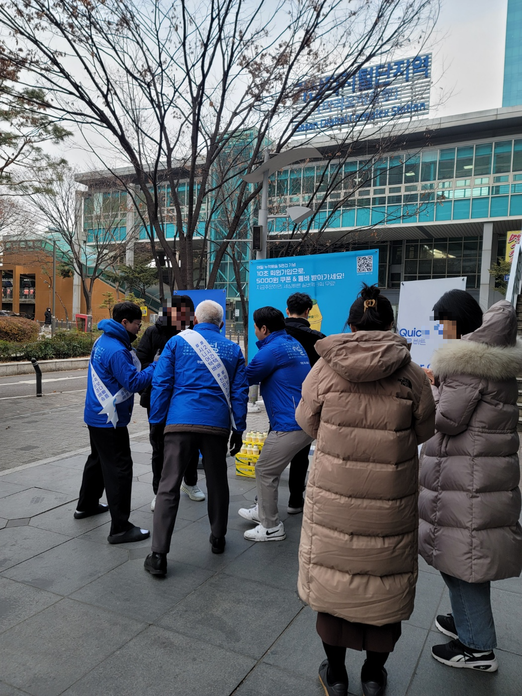 이벤트는 점심시간에 가산디지털단지역에서 진행하고 있으며, 10초 잠깐의 방문으로 무료 배송 쿠폰과 음료 받아가실 수 있으니 많은 참여 부탁드립니다.