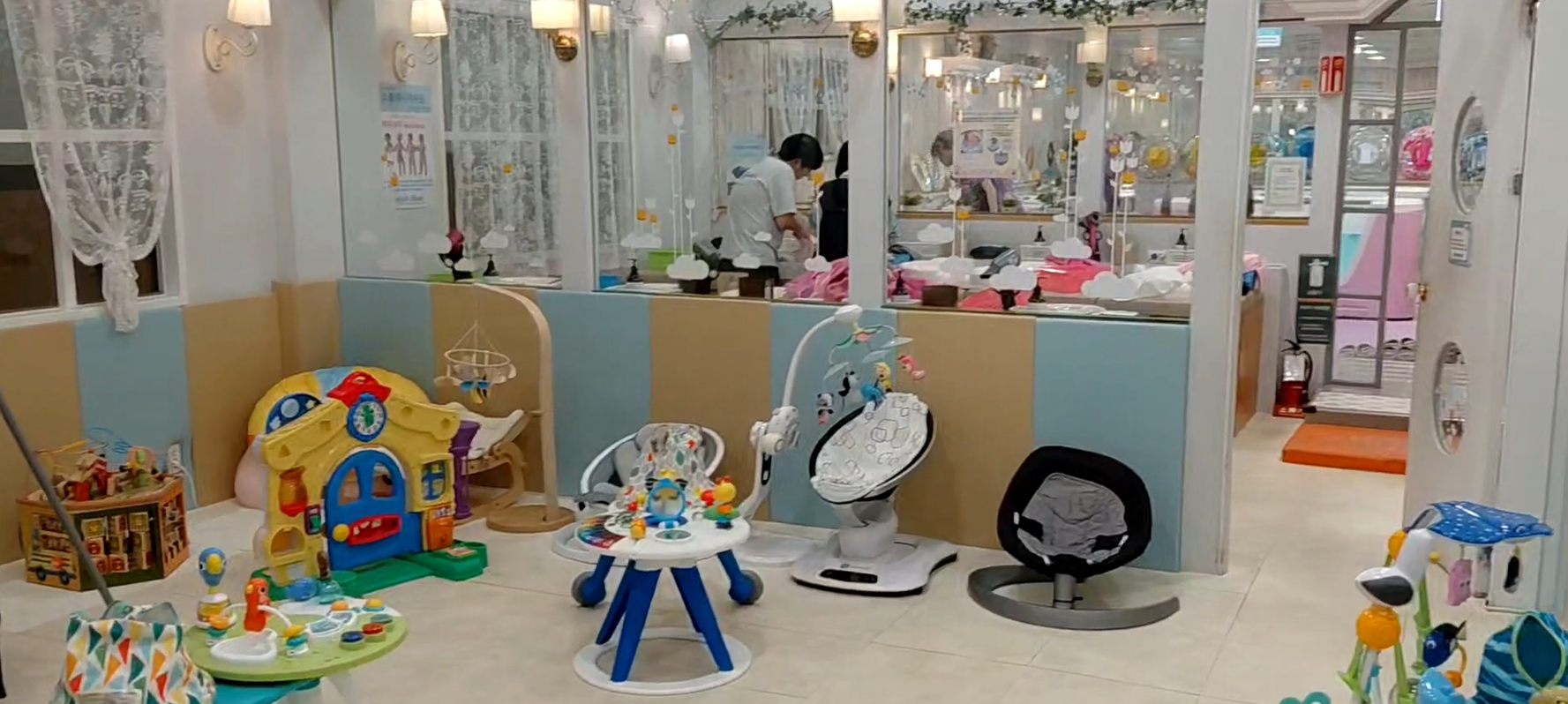 놀이시설은 아이가 이제 100일이라 놀 수 있는 기구가 없어서 아쉬웠고, 벽지가 조금씩 갈라진데가 있어서 아쉬웠지만 아기가 타이니 모빌을 너무 좋아하고 잘 놀아서 여기서 뽕 뽑고 나왔습니다 ㅎㅎ 100일 정도 되었는데 마땅히 갈 곳 없어 고민이신 분들께는 한번 추천드리고 싶은 곳입니다!