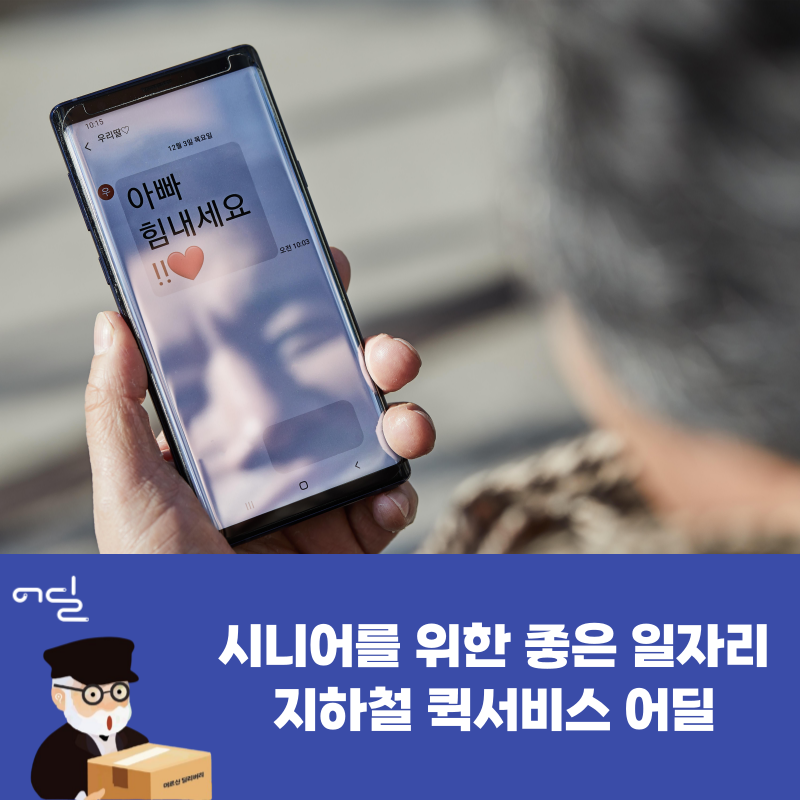 시니어를 위한 좋은 일자리 지하철 퀵서비스 어딜에서 자유롭고 즐겁게 일하기 원하시는 많은 시니어 분들을 기다립니다. 다음 이야기의 주인공은 여러분이 될 수 있게 어딜과 함께 좋은 일자리 만들어 갔으면 좋겠습니다.