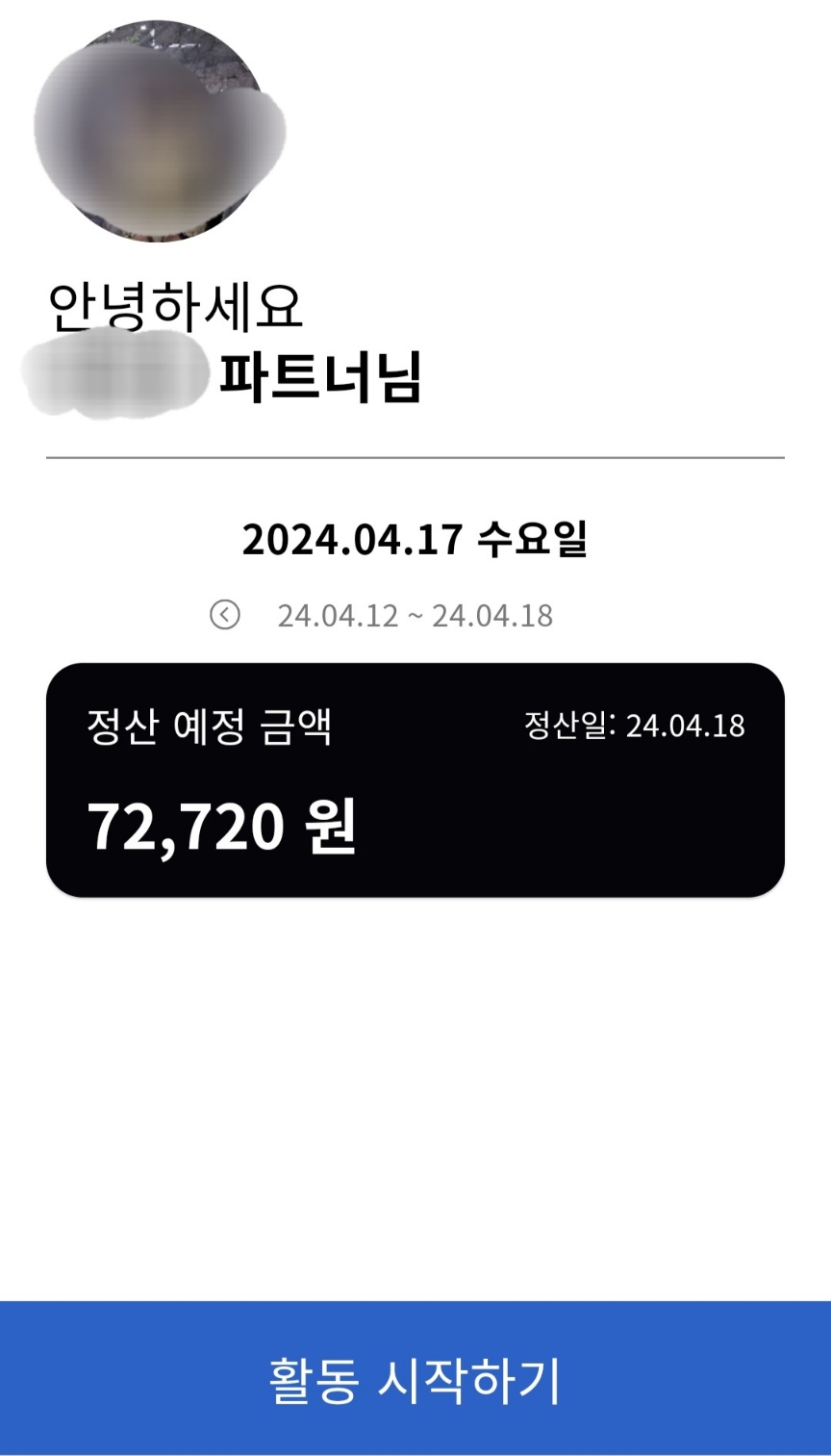 어플을 조작하는 순서는 위와 같습니다. 먼저 어딜 어플을 켜서 활동시작하기 버튼을 눌러줍니다. 활동시작을 누르면 상단에 배송과 픽업으로 나뉘어져 있는데 배송은 배송해야 할 목록이기에 오른쪽에 픽업을 눌러주시면 됩니다. 픽업을 누르면 배송과 마찬가지로 픽업 목록들이 보여지는데요! 그러면 그 목록중에서 내가 배정받은 위치를 찾아서 클릭하여 수락하기를 눌러줍니다. 그다음은 픽업장소를 찾아가서 물건을 찾은 후에 어플 화면 하단에 배송중에 들어가 내가 잡았던 목록을 클릭하여 왼쪽 상단 파란색 픽업중을 눌러서 픽업완료를 클릭합니다. 그다음은 사무실로 물건을 가져와서 배송중을 눌러 배송완료를 하면 픽업 완료입니다. 어렵지 않고 간단한 업무이니 동대문에 계신 분들은 많은 지원 부탁드립니다.