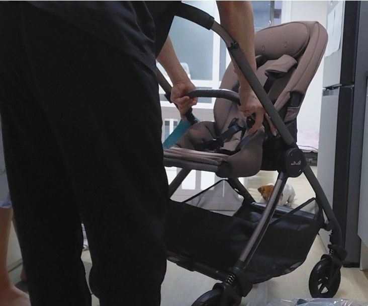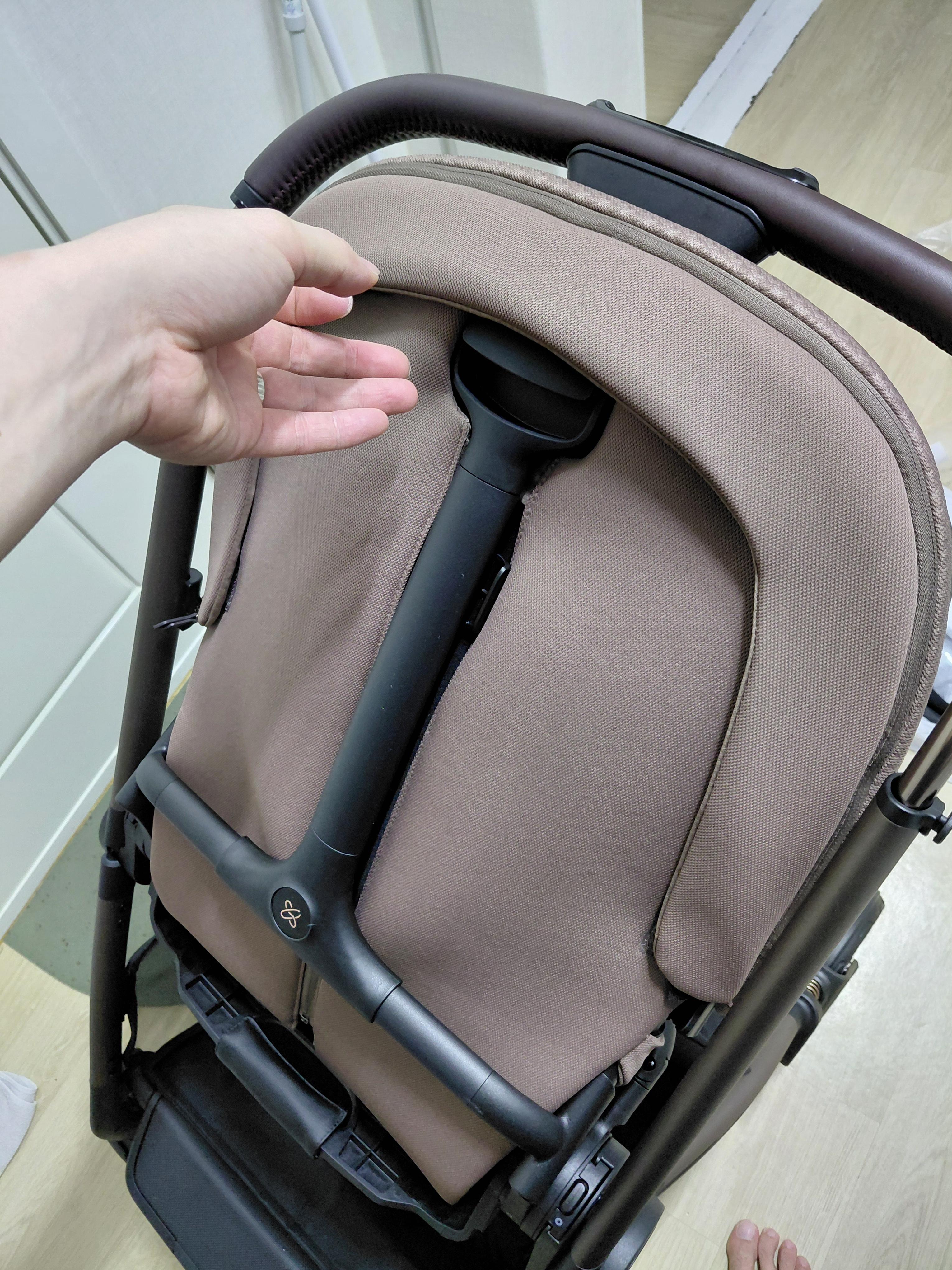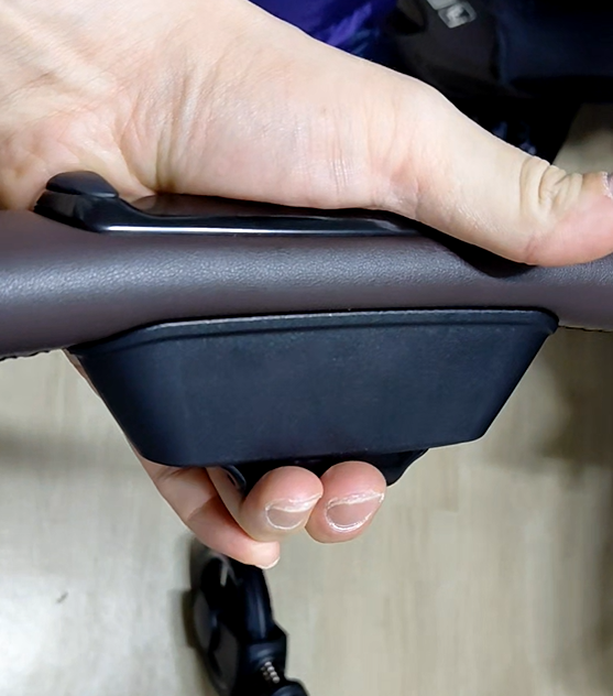 설치 하다가 한가지 알게 된 꿀팁이 있어서 공유드립니다. 유모차 손잡이 쪽 보면 두꺼운 버튼 하나가 있는데 손잡이 길이를 조절하는 버튼입니다. 이거는 그냥 중앙을 누르면 높낮이 버튼인데 살짝 옆으로 밀어서 누르면 유모차를 접는 버튼이라 두가지 기능이 한 버튼에 같이 있어서 잘 이용해주셔야 하는데요!