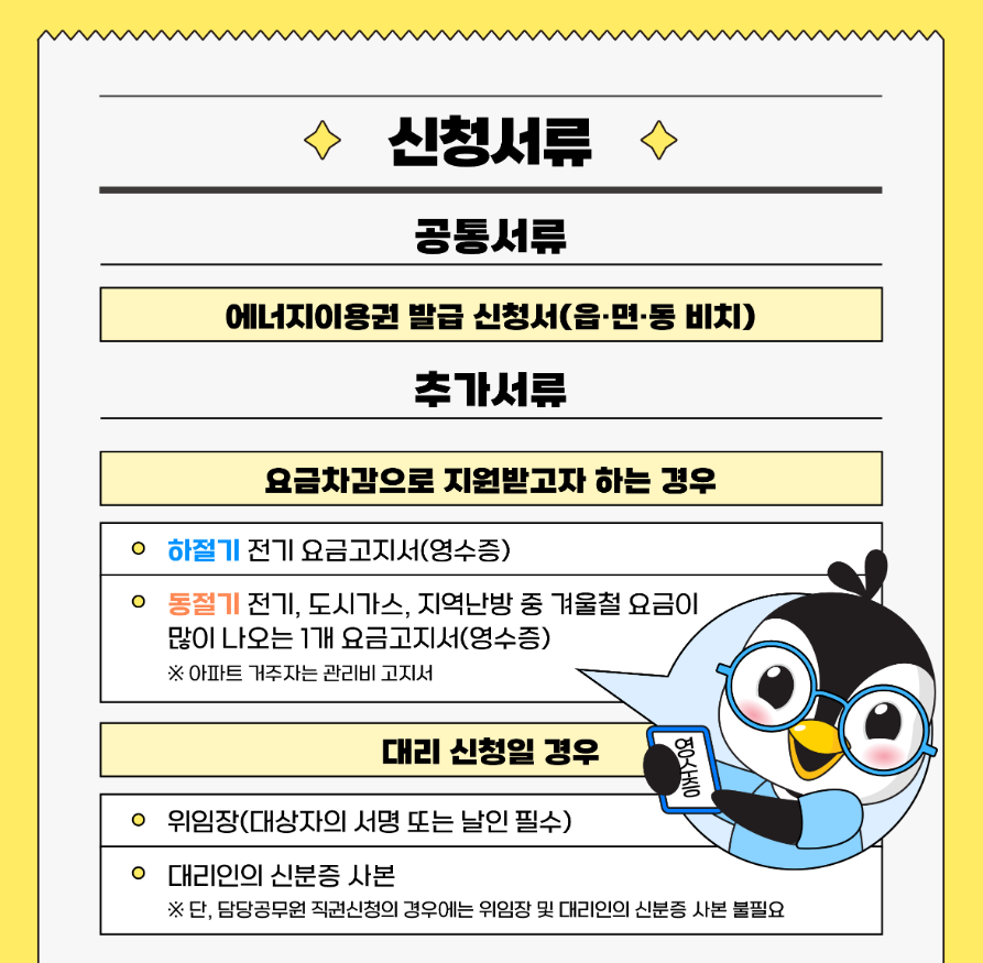 - 전담기관은 바우처 사용률 제고를 위해 에너지공급자와 협업체계를 구축하고, 한국사회보장정보원, 주택관리공단 등을 통해 정산합니다.