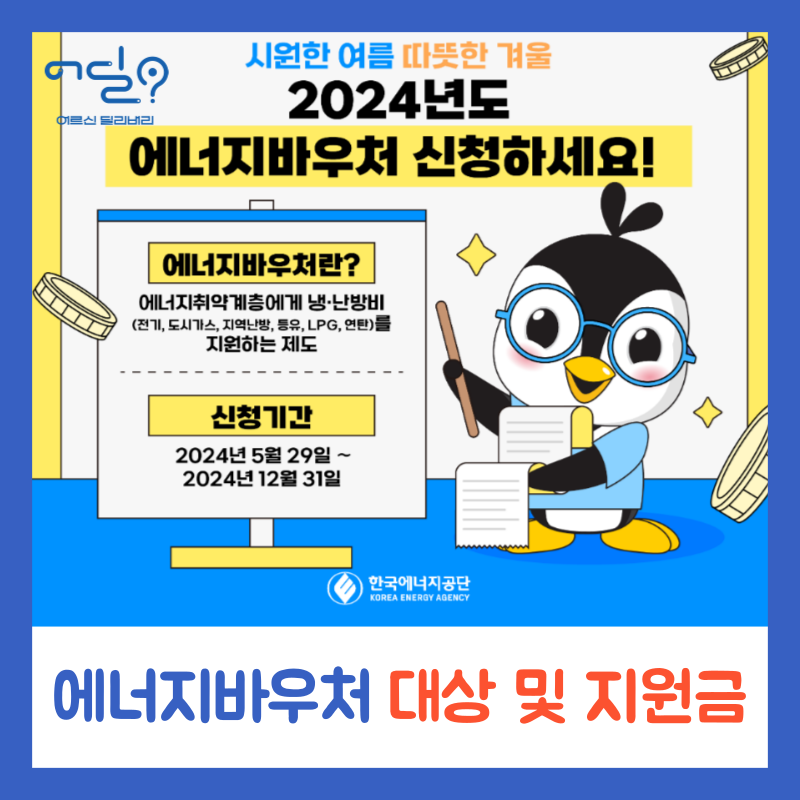 국민 모두가 시원한 여름과 따뜻한 겨울을 보낼 수 있도록 에너지 취약계층을 위해 에너지바우처를 지급하여 전기나 도시가스 그리고 등유나 LPG등 구입할 수 있는 지원제도가 있다고 합니다. 바로 "에너지바우처"입니다. 신청대상과 지원금액 그리고 방법 확인하시어 바로 신청하시고 올여름은 시원하게 겨울은 따뜻하게 보낼 수 있도록 미리미리 준비하시면 좋겠습니다. 그럼 신청링크 함께 올려드립니다.