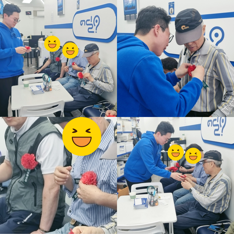 또한 파트너분들을 통해 삶의 지혜도 많이 배우고 나눔의 배려심도 많이 배워가고 있습니다. 살아오면서 힘들거나 어려운 경험 좋았던 경험을 바탕으로 삶의 지혜를 주시고 집에서 요리를 하시거나 간식을 사시면 항상 혼자드시지 않고 저희를 생각해서 늘 챙겨주시는 마음이 감사하여 저희도 그 감사함을 보답하고자 어버이날에 카네이션 선물을 준비하게 되었습니다. 늘 어딜을 위해 일해주셔서 다시한번 감사합니다.