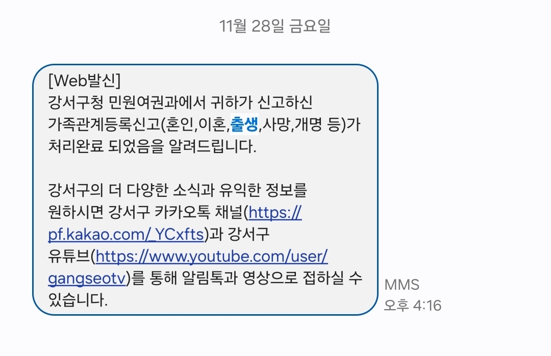 출생 신고 완료