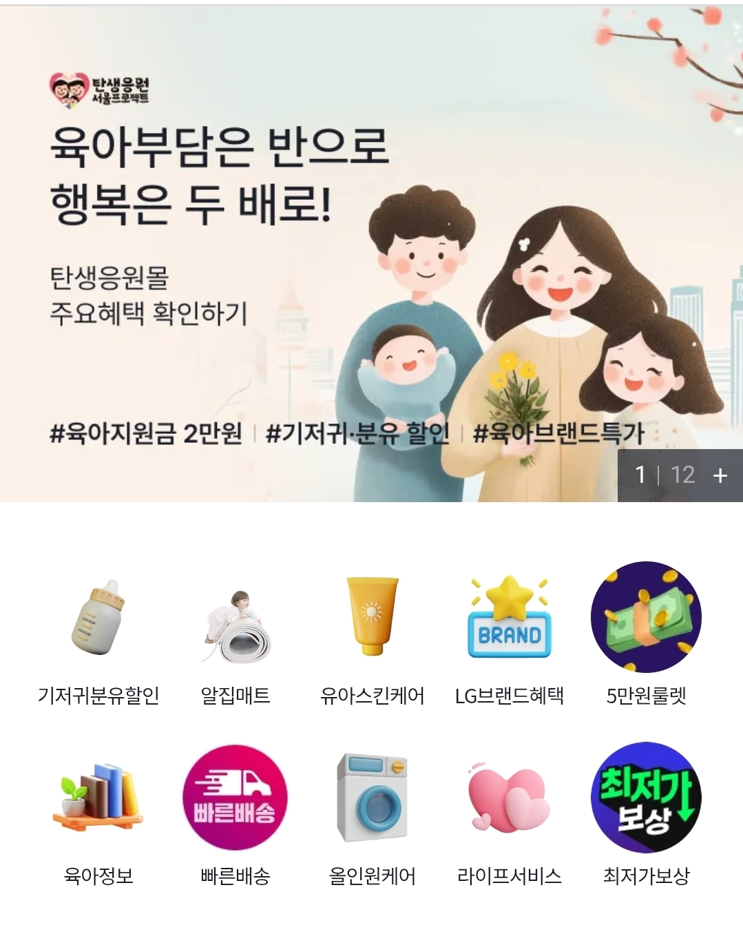 탄생응원몰은 기저귀, 분유 등등 아이 물품을 구매할 수 있는 사이트인데요!